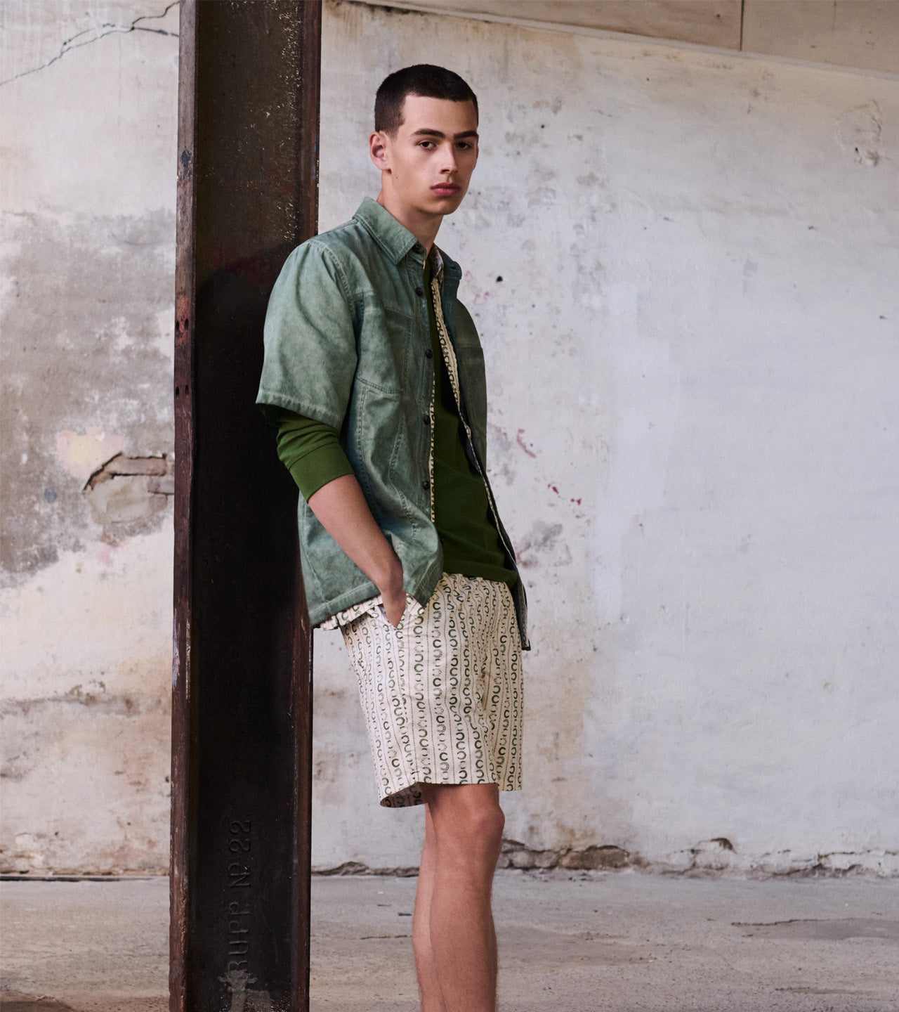 Printed linen short sleeve shirt