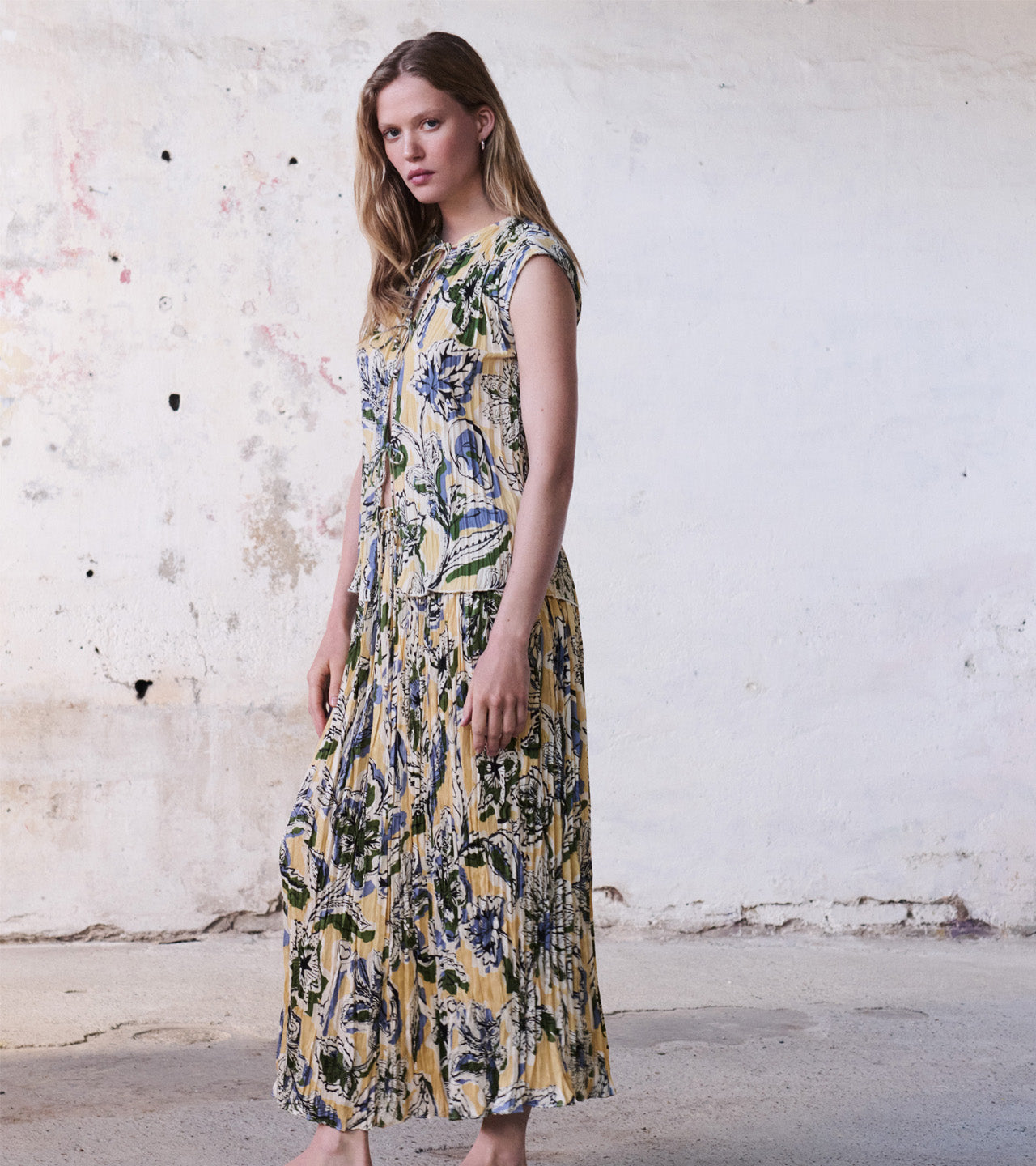 Printed pleat top