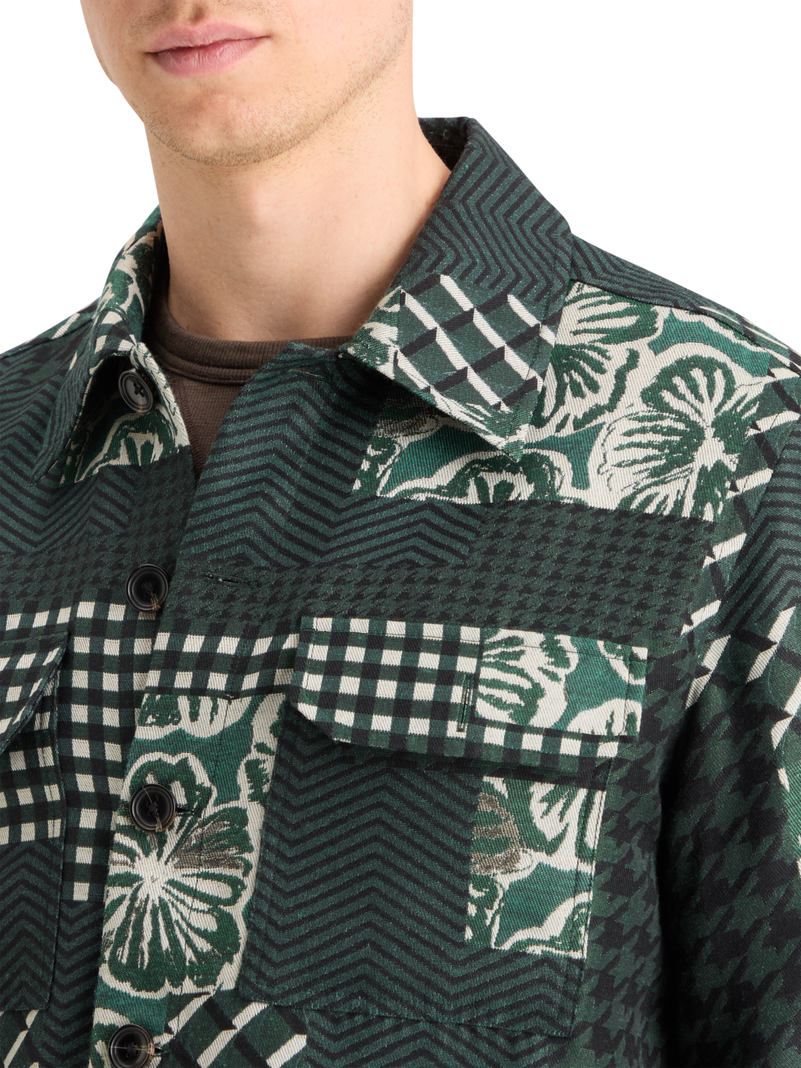 50% offPATCHWORK JACQUARD OVERSHIRT