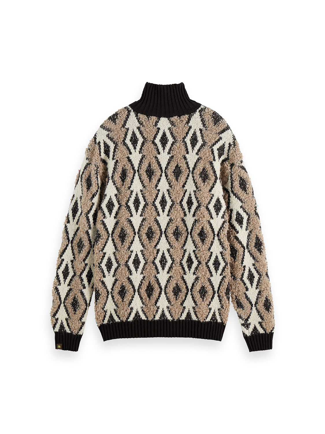 A relaxed-fit pullover with dropped shoulders and modern argyle jacquard.