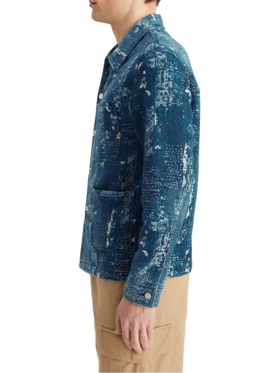 ArchiveIndigo jacquard denim workwear jacket with wash effects