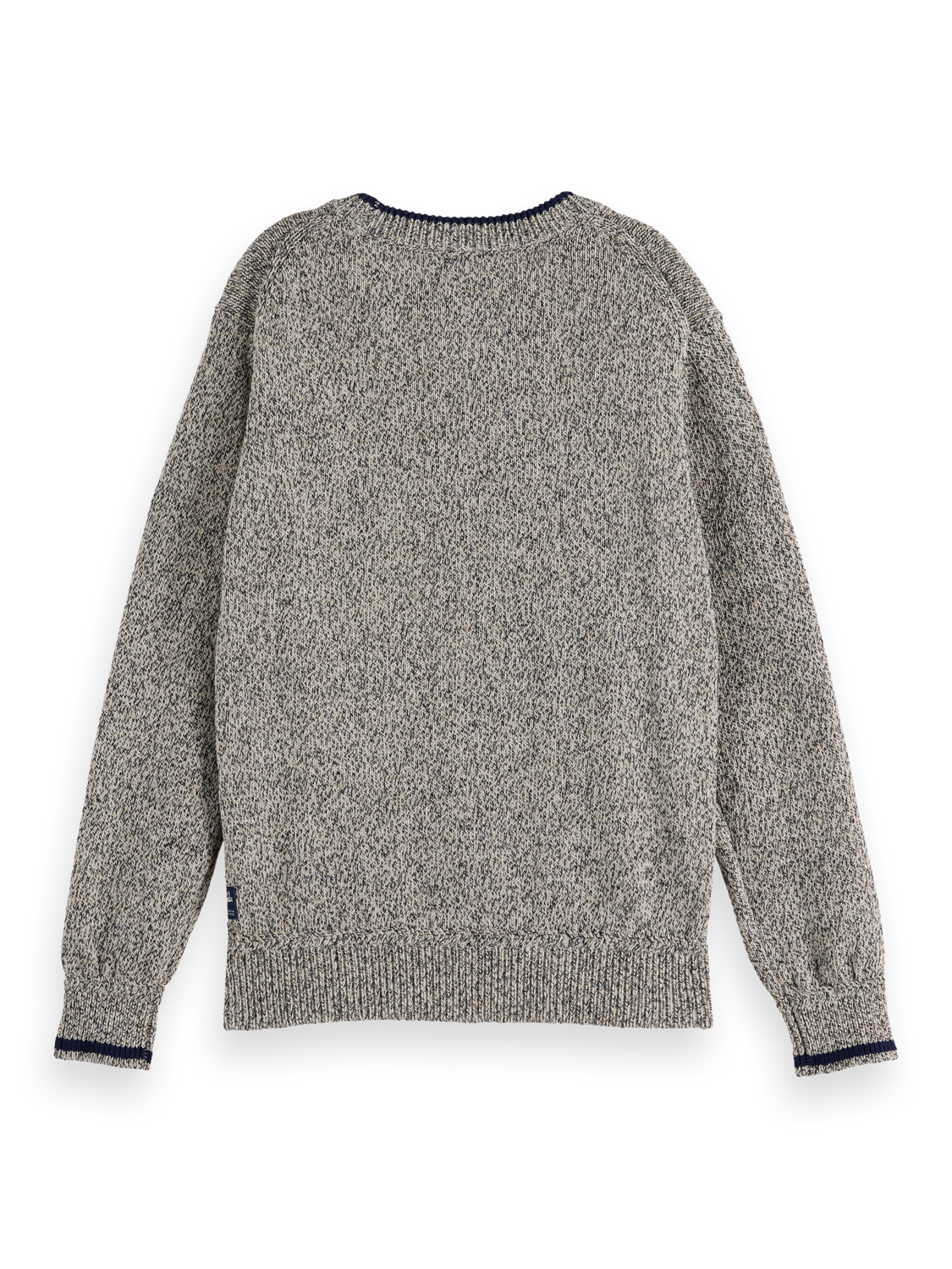 This pullover features a melange knit and regular fit- soft, easy, and perfect for layering.