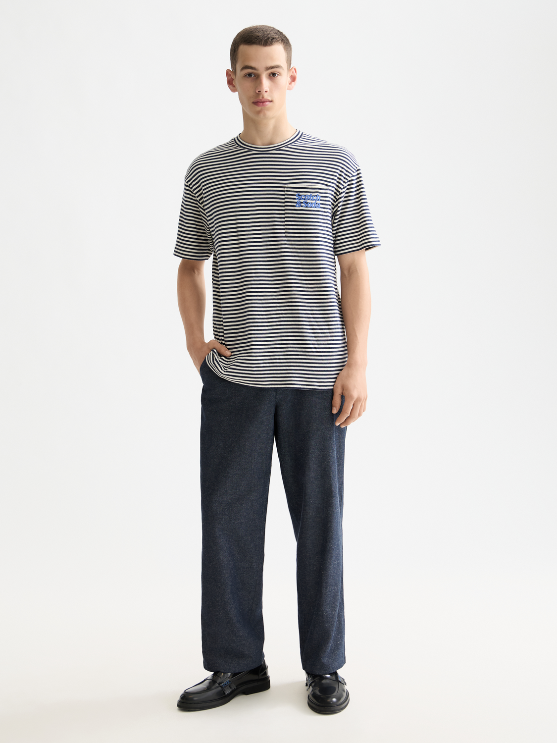 This double-face striped jersey T-shirt features a chest pocket and soft texture, combining casual style with easy, everyday comfort.