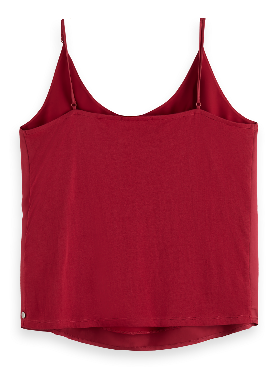 A versatile staple, this sleeveless tank blends soft jersey and woven fabric for an effortlessly stylish everyday look.