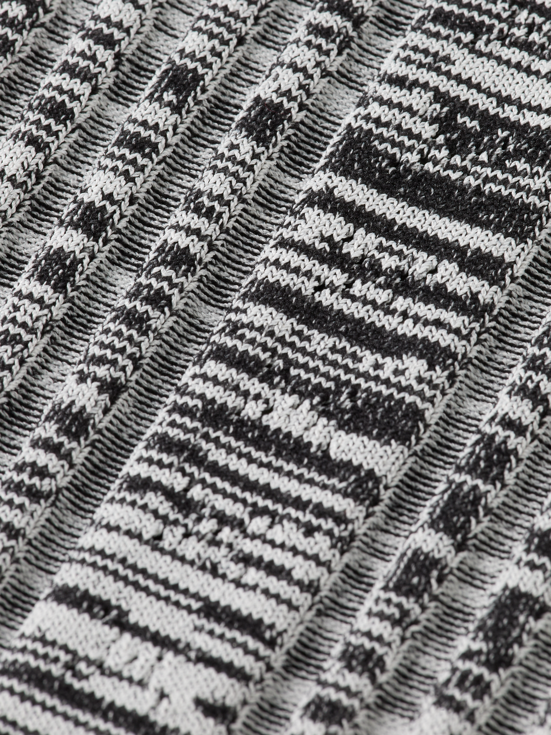 Deze comfortabele essential is gemaakt van zacht, rekbaar garen met een geribbelde textuur die dimensie en warmte toevoegt. De relaxte pasvorm maakt hem perfect te combineren met een jeans of de bijpassende maxi-rok van ribbreiwerk.