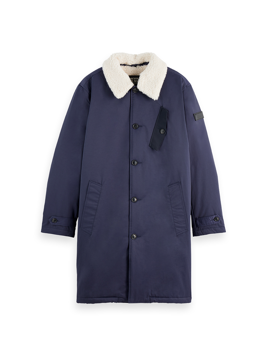 A tailored coat finished with a soft teddy collar for a refined yet cosy feel.