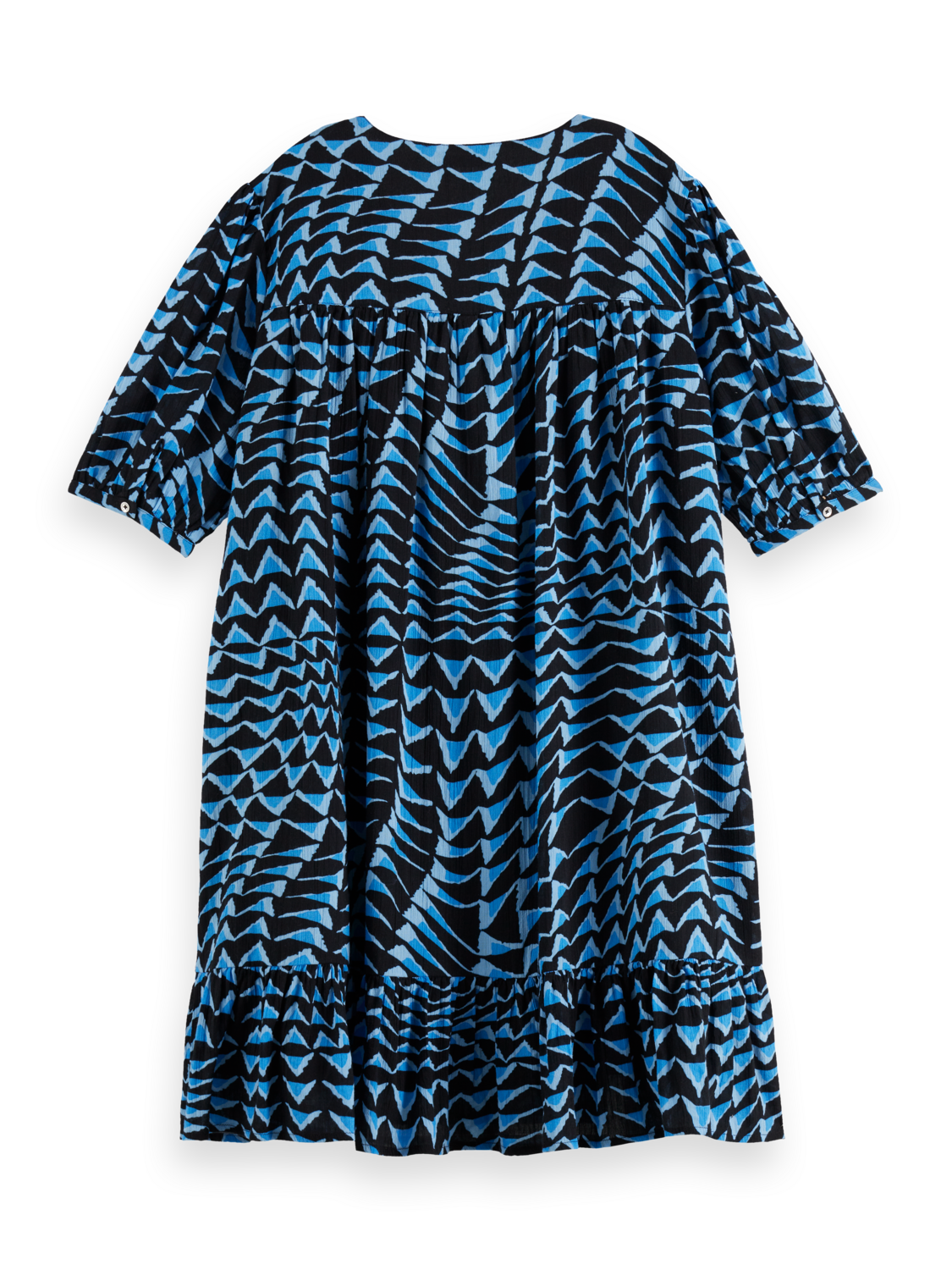With a relaxed fit and soft crinkled texture, this mini dress features a bold print, making it an easy statement piece.